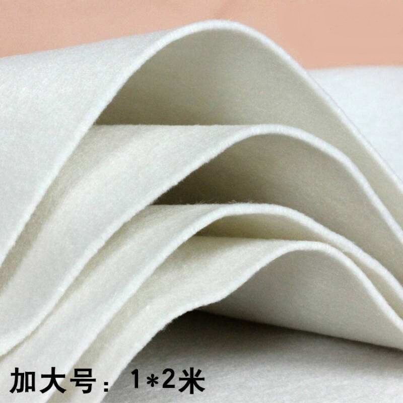 用途:創作或練習書畫時墊在練習紙和宣紙下面,絨毛托起宣紙,吸收多余墨水,可反復使用,甚至于有些老書畫家會用幾十年,不必再墊報紙之類經常要更換的工具,也可以不再使顏料和墨汁直接透過宣紙或練習紙而弄臟桌子,實用、柔軟、價廉物美。