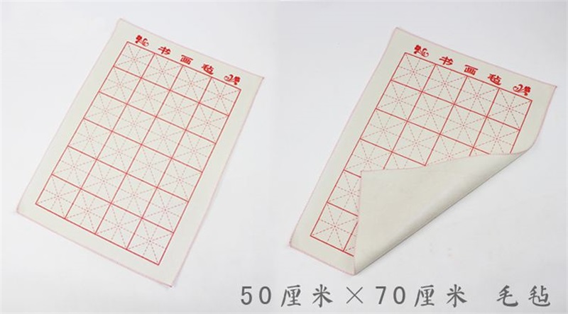 用途:創作或練習書畫時墊在練習紙和宣紙下面,絨毛托起宣紙,吸收多余墨水,可反復使用,甚至于有些老書畫家會用幾十年,不必再墊報紙之類經常要更換的工具,也可以不再使顏料和墨汁直接透過宣紙或練習紙而弄臟桌子,實用、柔軟、價廉物美。